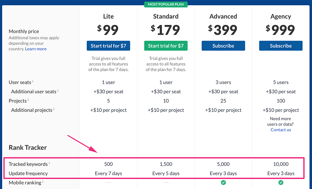Verdict: Both tools offer very similar pricing. But if you’re someone who doesn’t want to spend a dime to test the tool, then SEMrush is a great choice for you.